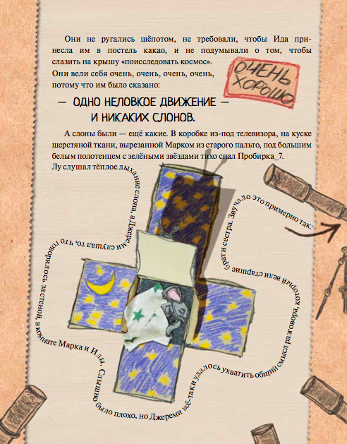 пододеяльника, а потом слез с кровати и подошел к коробке со слоном. Лу